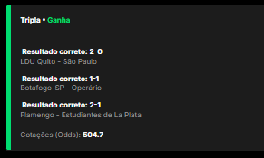 Mais um do time das apostas de R$5, onde a ordem era placar exato e, na moral, a mitada aqui foi INSANA. Veja o trio de jogos que esse mito cravou:
