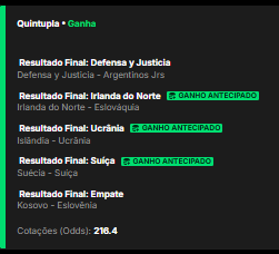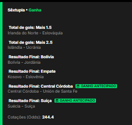 Esse mito apareceu com a famosa aposta de R$5, que é o grande case de sucesso aqui na KTO. A aposta foi em jogos entre seleções e também no futebol argentino. Uma mitada de seis jogos! Veja: